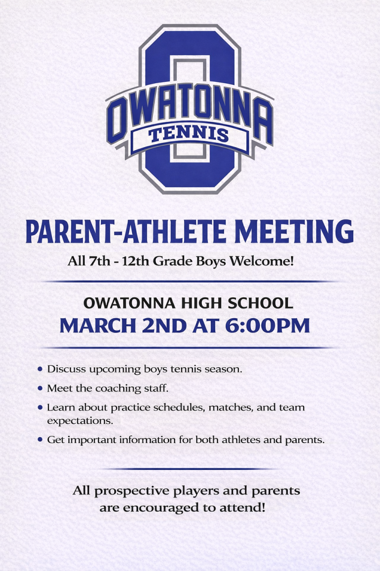 Come cheer on the Boys High School Tennis team! The Boys season typically runs from the end of April to the end of May. Click to learn more about Owatonna High School athletics.